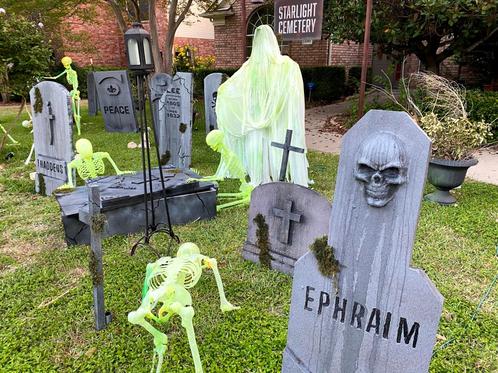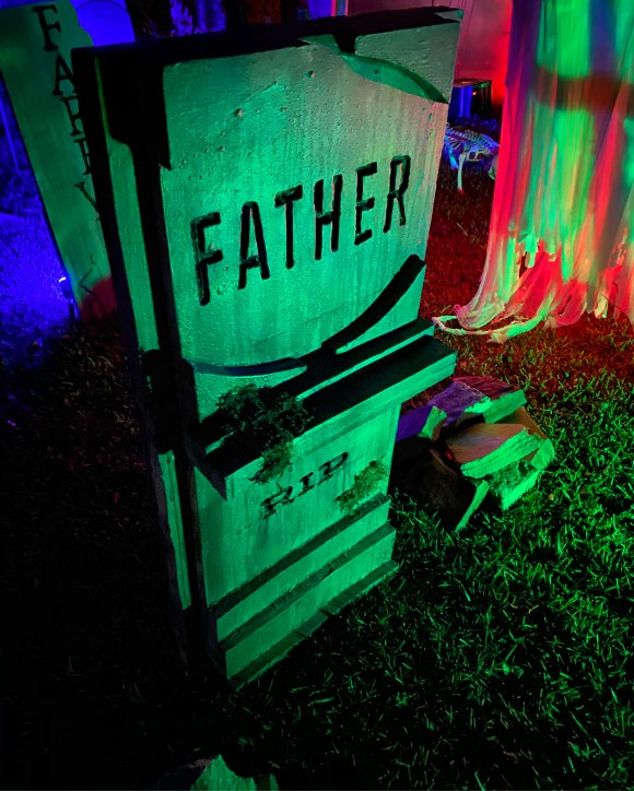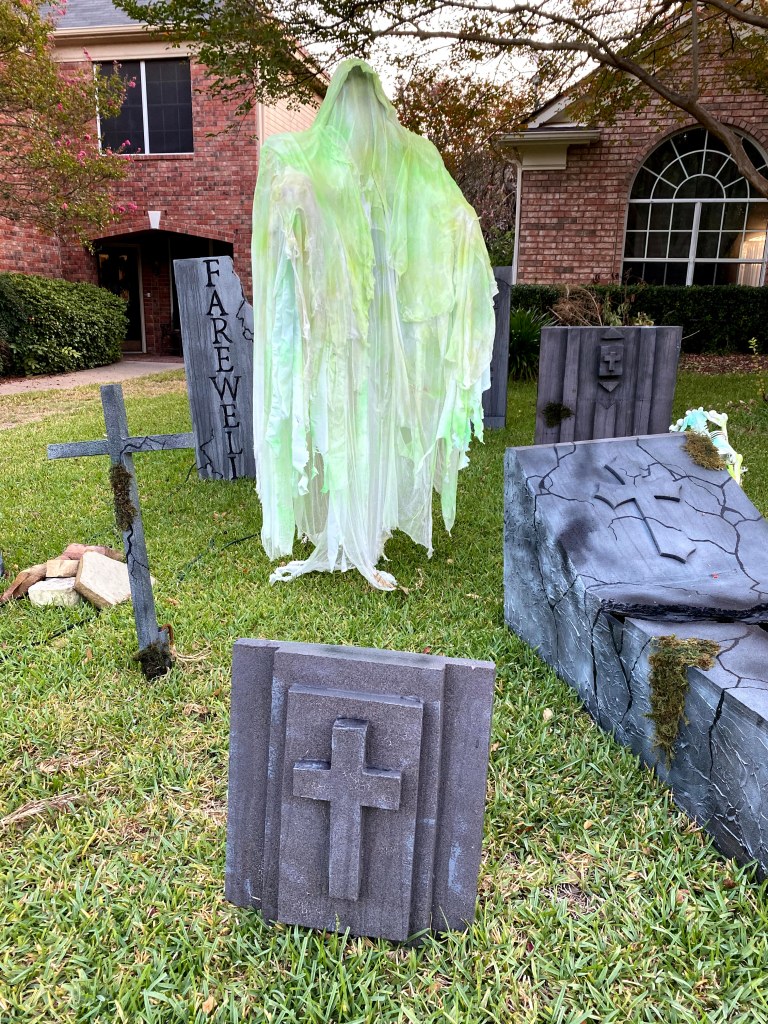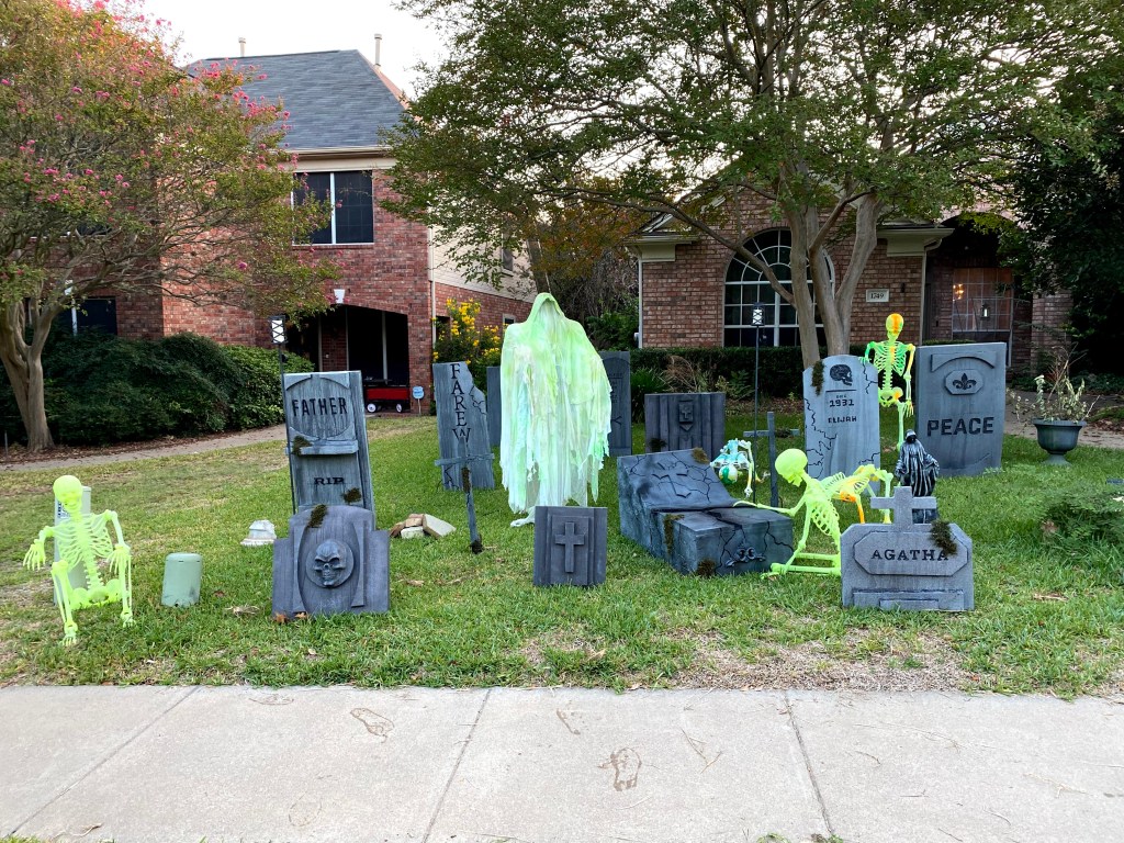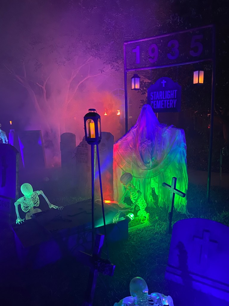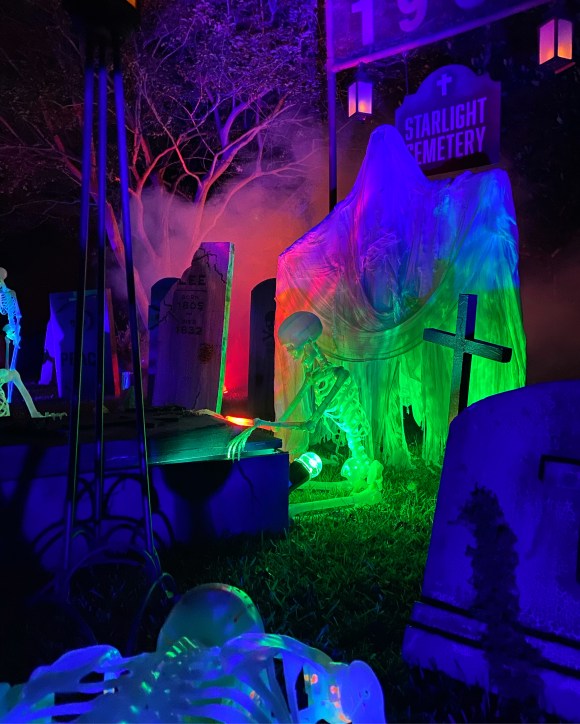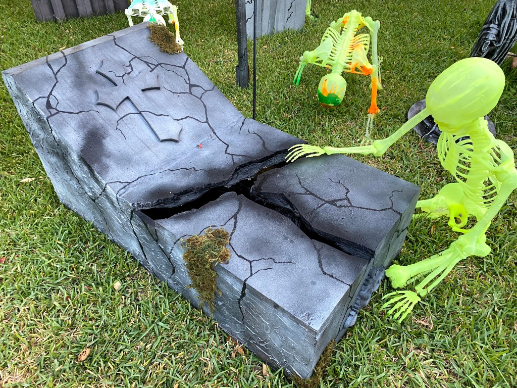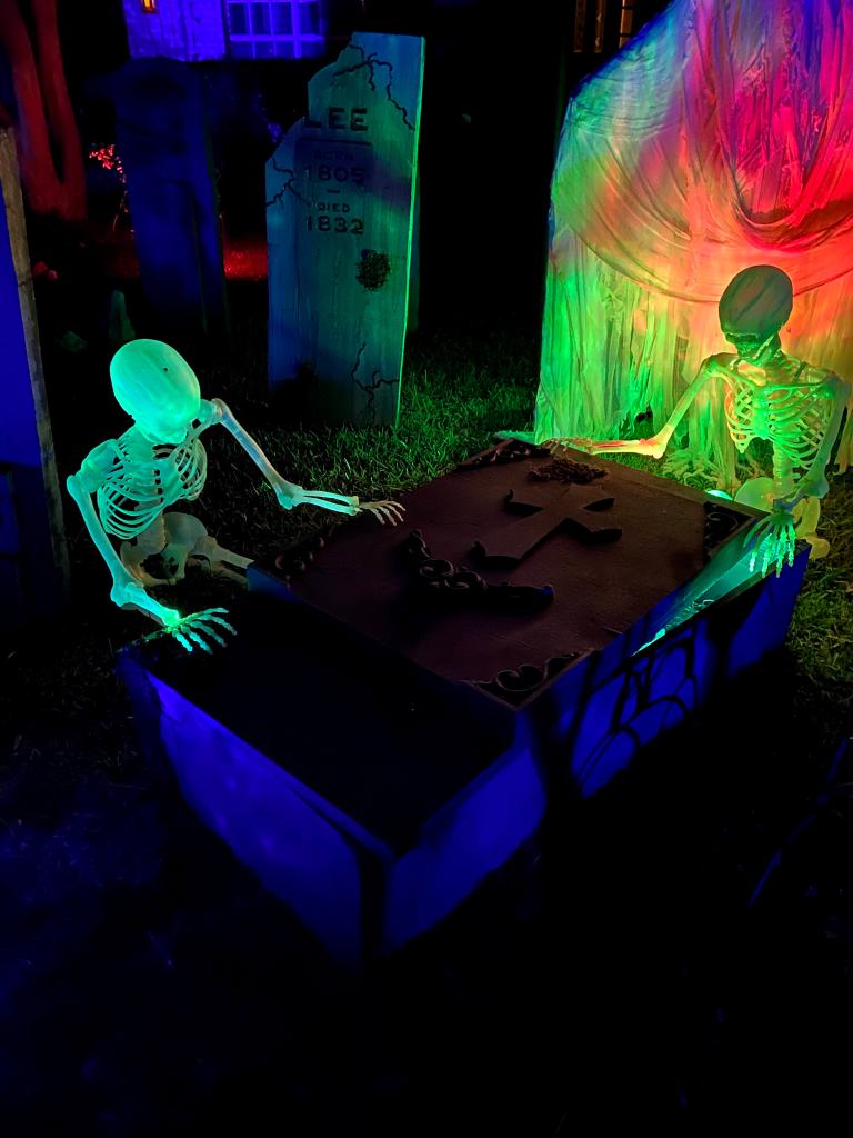 This year, I moved away from the “TOXIC SPILL” theme and into a more traditional cemetery approach. Hey, I can always go back to it if I feel like it. The continued addition of some new higher quality props and additional touches throughout made for a powerful overall impression in the daytime and at night.